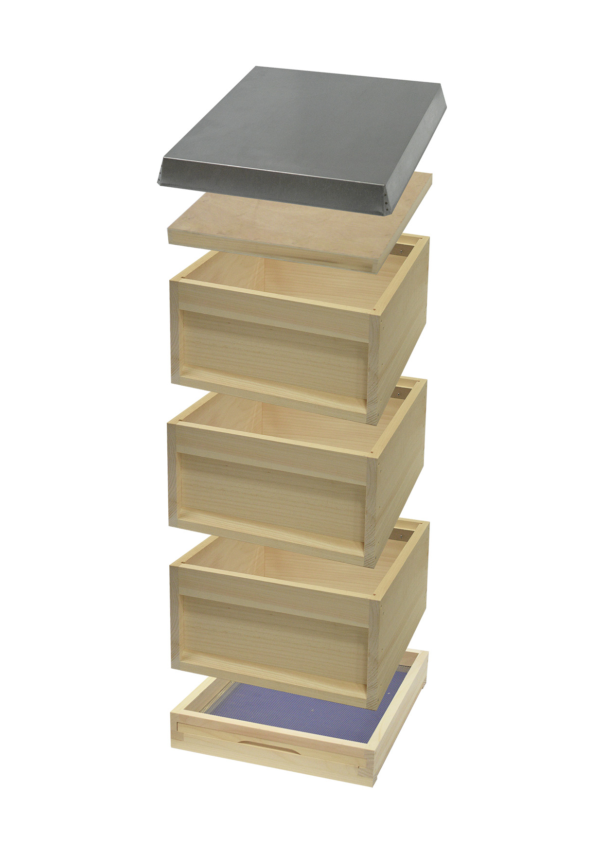 - Innendeckel: Gefüllt mit hochwertiger, umweltfreundlicher Sägespäne, die als natürliche und effektive Isolierung dient. Dieser Aufbau sorgt für eine optimale Temperaturregulierung und schützt den Bienenstock vor extremen Wetterbedingungen.