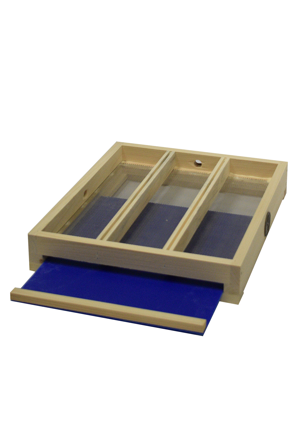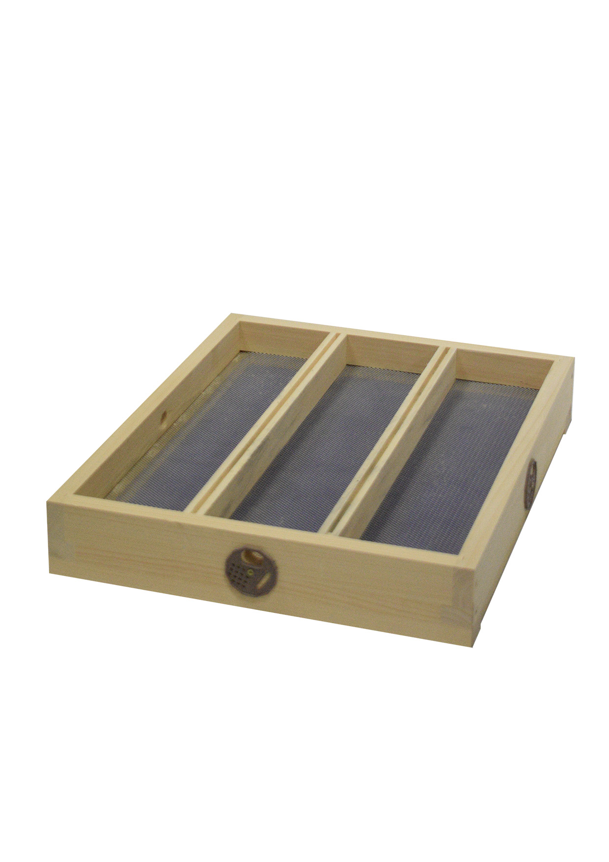- Antivarroa-Boden: Ein Gitterboden, speziell für drei separate Ableger ausgelegt.